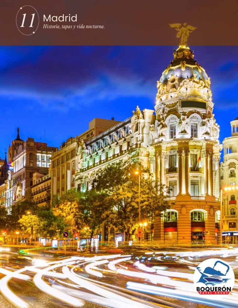 - España Vibrante: Desde la arquitectura única de Barcelona y la histórica Zaragoza, hasta la energía de Madrid. Disfrutarás de un Madrid nocturno lleno de luces y una excursión imperdible a la ciudad medieval de Toledo.
