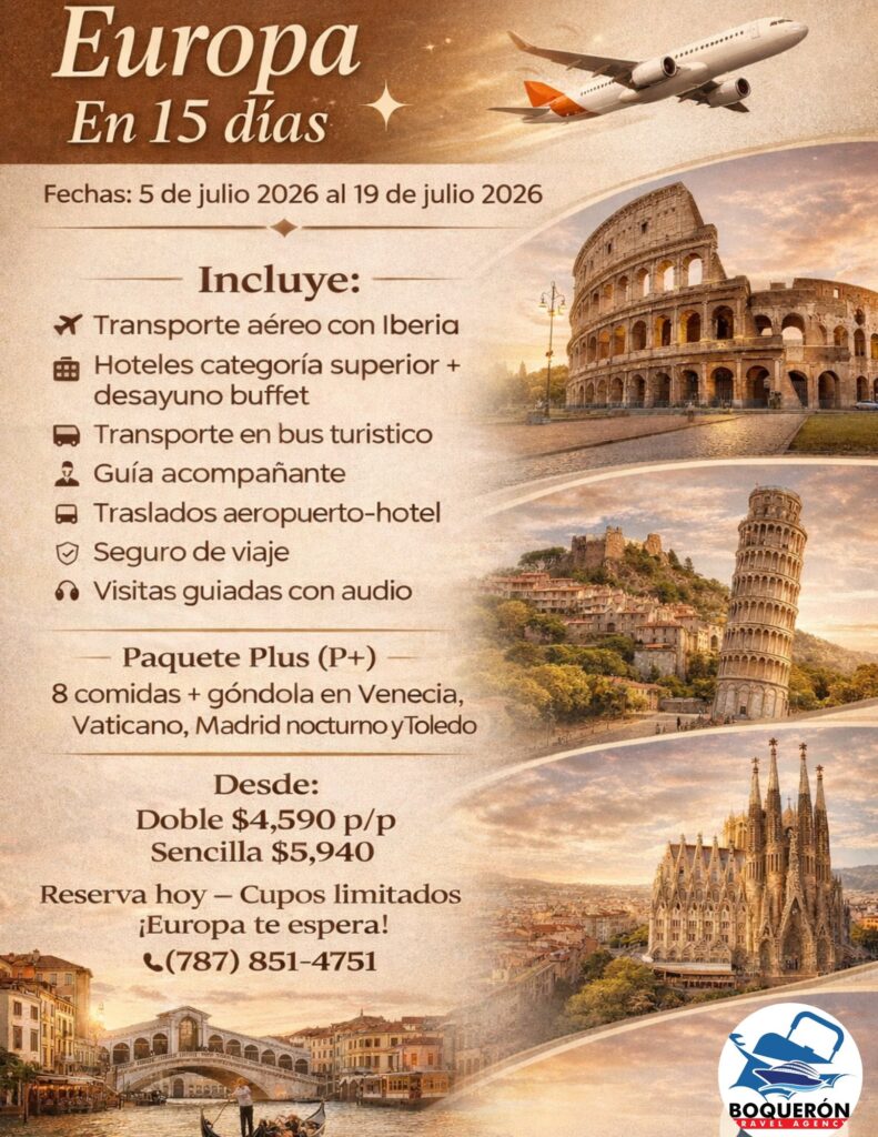 El verano en Europa es la temporada más deseada y los cupos son limitados. No dejes pasar esta oportunidad de viajar con la confianza de Boqueron Travel.